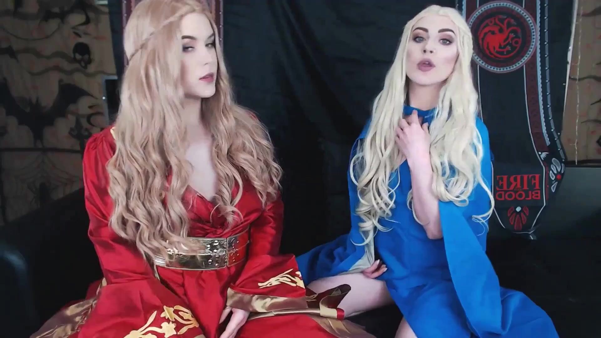 Zwei Glamour Cosplay Babes masturbiert Arschlöcher mit Dildos