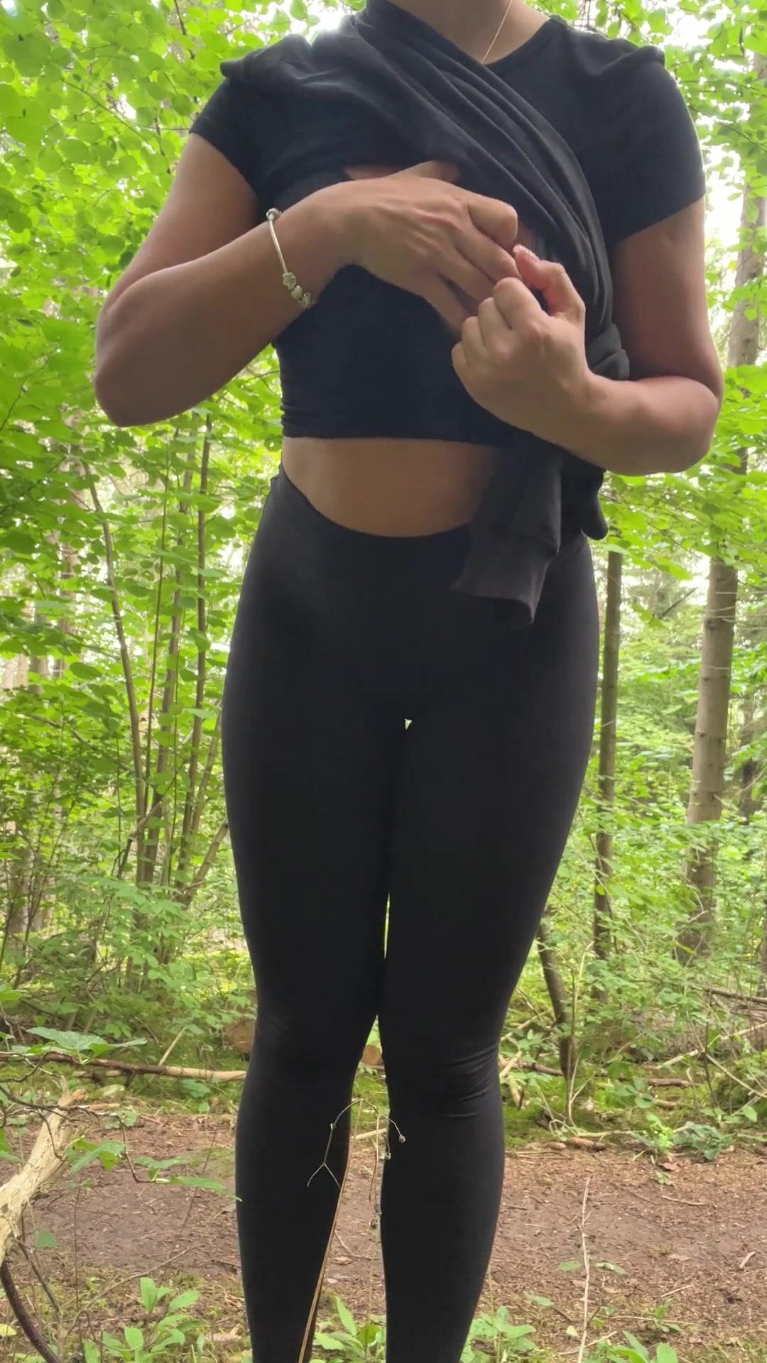 Auslegen von Brüsten während der Wanderpause