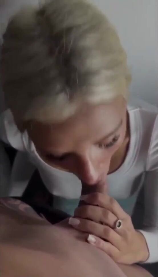 Blonde Babe nimmt Dick tief in ihre Kehle