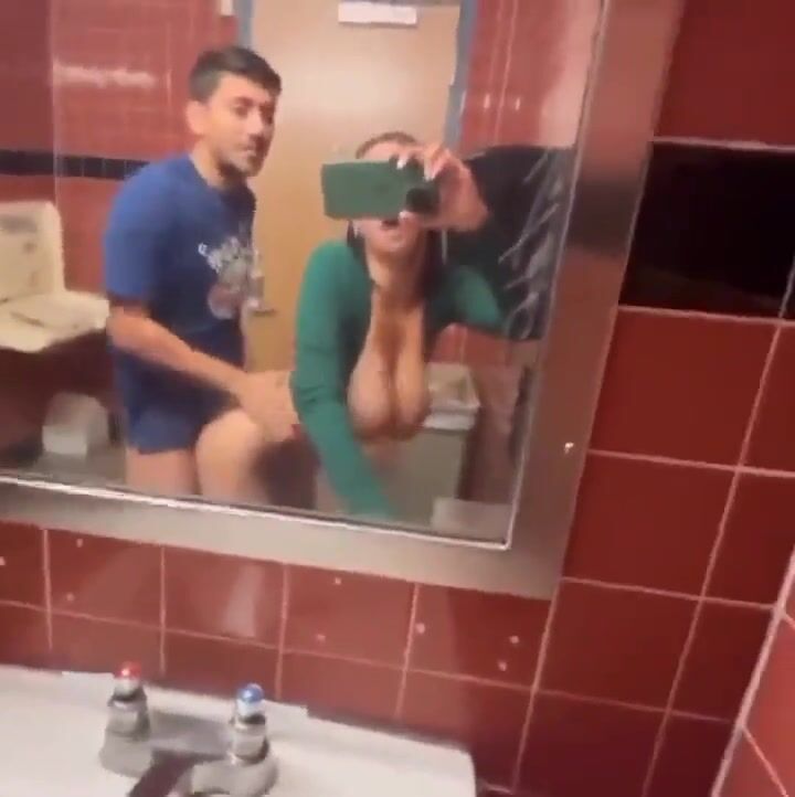 Geficktes Big Titty Teen auf einer öffentlichen Toilette