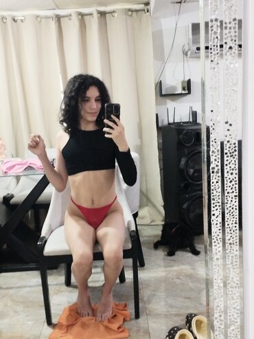 Ebony dickgirl pone sus DSLs a trabajar.