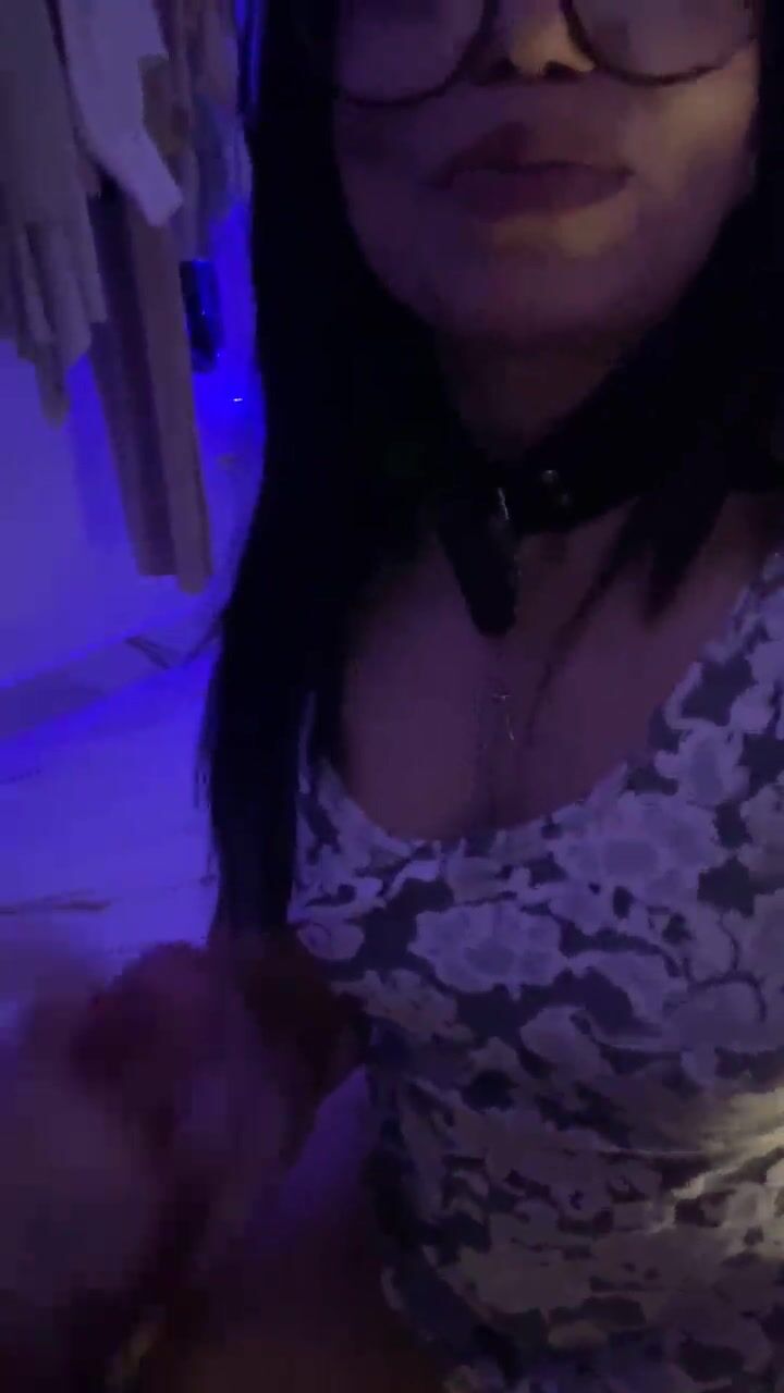 Latina com óculos grossos a montar o brinquedo sexual bbc