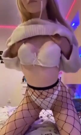 loira gira de meias de rede a brincar com a sua rata